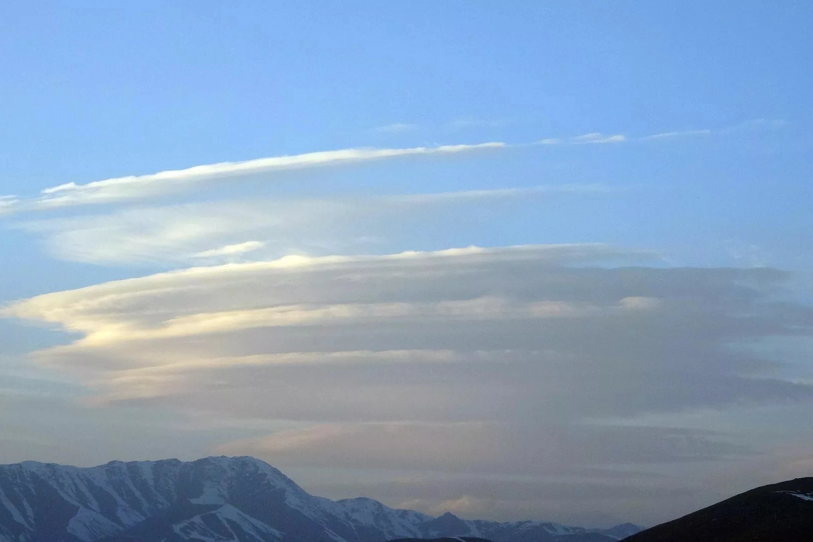 Yüksekova ilçesinin Şişol Dağı üzerinde oluşan ve yaklaşık bir saat boyunca bozulmadan kalan mercek bulutu görenlerin ilgisini çekti.