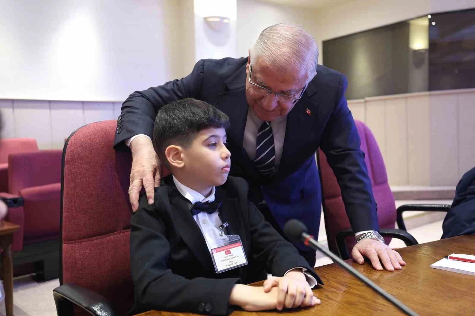 "Kıymetli evlatlarım, bugün bayrağımız özgürce dalgalanıyorsa, cennet vatanımızda başımız dik ve onurlu bir şekilde yaşıyorsak bunda en büyük pay, aziz şehitlerimize ve kahraman gazilerimize aittir" diyen Bakan Güler, "Bizler de onların emaneti olan kutsal vatanımızı korumak ve aydınlık yarınlarımızı sağlamak için elimizden gelen her şeyi yapıyoruz. Sizlerden beklentim, köklü tarihimizi çok iyi bilmeniz, kendinize güvenerek büyük başarılar elde edeceğinize ve ileride güzel mesleklere sahip olacağınıza inanmanızdır. Unutmayın ki şimdiden kendinizi en iyi şekilde yetiştirmeniz hem sizin için hem de ülkemiz için büyük önem taşımaktadır. Zira sizler, vatanımızı ve istiklalimizi korumak için cesaretle ve fedakarca görevini yaparken şehit ve gazi olan kahramanlarımızın evlatlarısınız. Şehit ve gazilerimizin en kutsal emaneti ve canımızdan bir parça olan sizleri çok seviyoruz. Devletimiz, siz değerli çocuklarımıza daha iyi bir gelecek hazırlamak, iyi şartlarda eğitim almanızı sağlamak için tüm imkânlarını seferber ediyor. Çünkü sizler, yaşama sevincimizsiniz ve geleceğimizin teminatısınız. Milli Savunma Bakanlığı olarak bizler de daima yanınızdayız. Bunu asla unutmayın. Sizlere ve çok kıymetli ailelerinize her konuda destek olmaya devam edeceğiz. Her fırsatta ifade ettiğim gibi bir kez daha belirtmek isterim ki biz büyük bir aileyiz. Sevinçte ve kederde bir ve beraberiz. Bu duygu ve düşüncelerle, başta Gazi Mustafa Kemal Atatürk ve silah arkadaşlarını, şanlı tarihimizdeki nice zaferleri bizlere armağan eden aziz şehitlerimizi minnet ve rahmetle, kahraman gazilerimizi şükranla anıyorum. Siz değerli evlatlarımızın 23 Nisan Ulusal Egemenlik ve Çocuk Bayramı’nı bir kez daha kutluyor; sizlere sağlık, başarı ve esenlikler diliyorum" dedi.