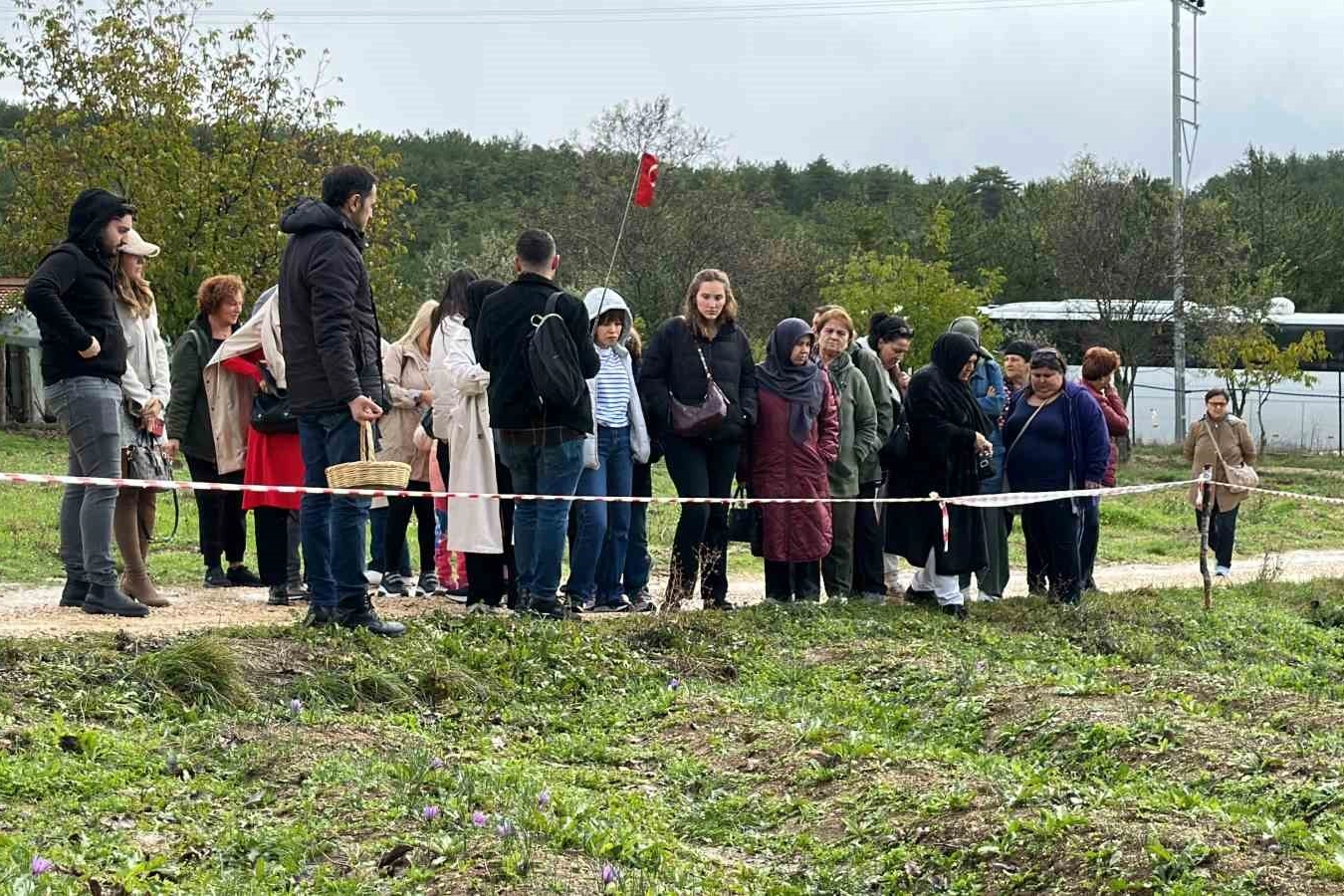 İlçe turizminin destinasyonu haline gelen safran tarlalarında yağışa rağmen hafta sonu yoğunluğu yaşanıyor.