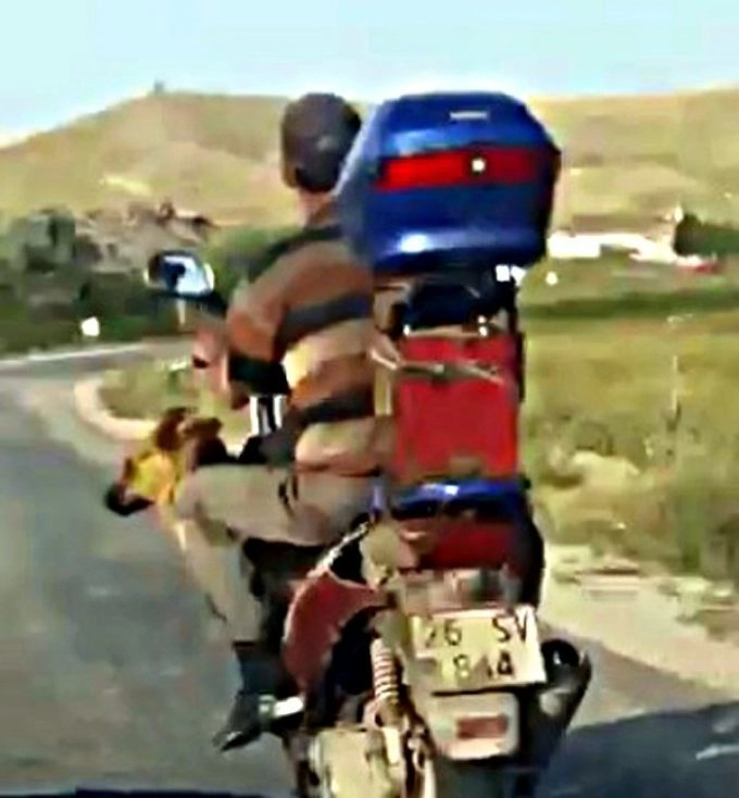 Eskişehir’de bir motosiklet sürücüsünün köpeğini önüne alarak tehlikeli yolculuğu kazaya davetiye çıkardı.75’inci Yıl Mahallesi yakınlarında bir motosiklet sürücüsünün köpeğini önüne alarak yolculuk etmesi yürekleri ağza getirdi. Köpeğin ani bir hareketi ya da motosikletin manevralarında köpeğin sabit durmayı başaramaması olası kazalara davetiye çıkarırken, motosiklet sürücüsünün rahat tavırları dikkat çekti. Yaşananlar bir vatandaşın cep telefonu kamerasına da yansıdı.