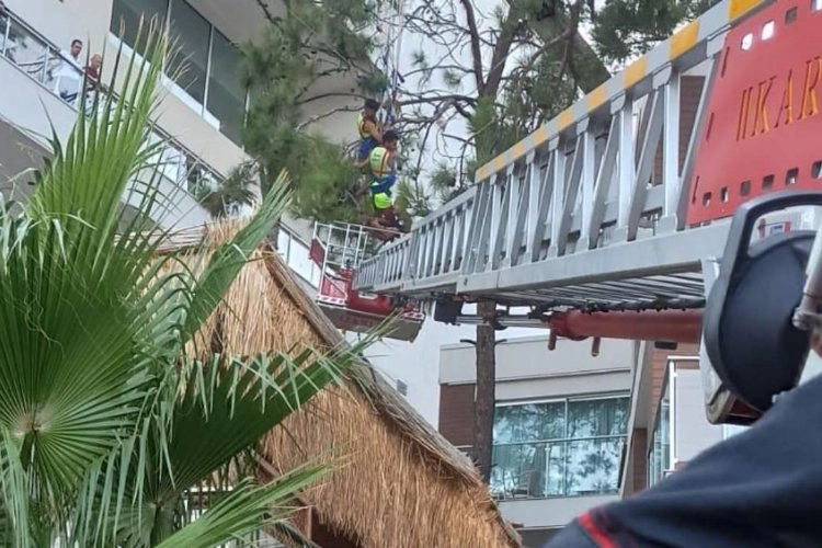 Taşkaya ve İşleyen, bir süre sonra ipin kopması sonucu rüzgarın da etkisiyle bir otelin bahçesindeki ağaca düştü.