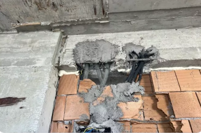 Deprem bölgesinde hasar gören binalarla ilgili paylaşımlarda bulunan Prof. Dr. Birpınar, binaların yapımı sırasında tesisatçı ve elektrikçilerin hatalarıyla oluşan zararlara dikkat çekti.
