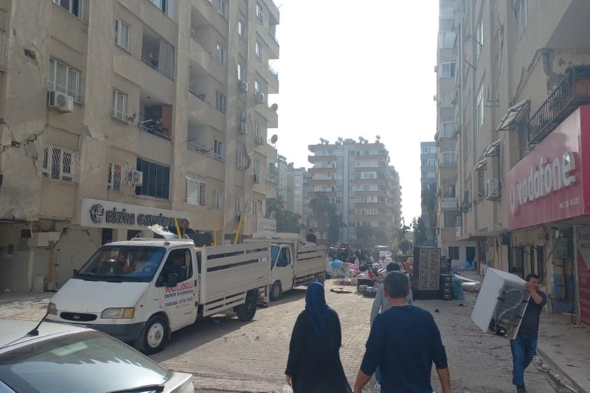 Kahramanmaraş merkezli meydana gelen 11 ilin etkilendiği ‘asrın felaketi' olarak adlandırılan depremden önemli boyutta etkilenen Osmaniye'de çok sayıda bina yıkılırken, çok sayıda bina da hasar gördü. Hasar gören binalar boşaltılırken, vatandaşlar ise eşyalarını taşımaya devam ediyor. Merkeze bağlı Adnan Menderes Mahallesi'nde bulunan depremde 2 bloku yıkılan Metin Tamer Sitesi ve Sefa Evler Sitesi'nde ağır hasarlı binalara gelen vatandaşlar, dairedeki eşyaları aşağıya indirmek için birbiriyle yarıştı. Dairenin balkonundan veya penceresinden eşyalarını aşağıya atan depremzedeler ağır hasarlı binaların önünde bulunan kamyonlara yükledi. Vatandaşların eşya taşıma telaşı kameraya yansıdı.
