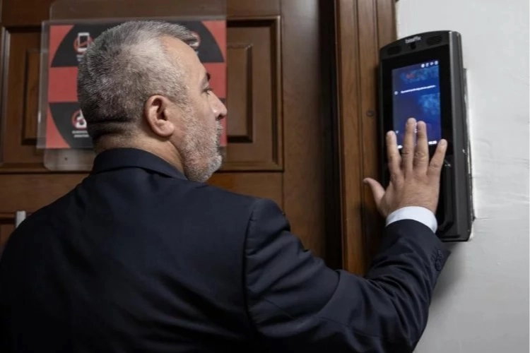 Sınav güvenliğinin sağlanması için soru yazarları, yanlarında hiçbir materyal olmadan x-ray cihazları ve el dedektörleriyle arandıktan sonra avuç içi tarama ve yüz okuma sistemlerinden geçerek kırmızı alana alınıyor.
