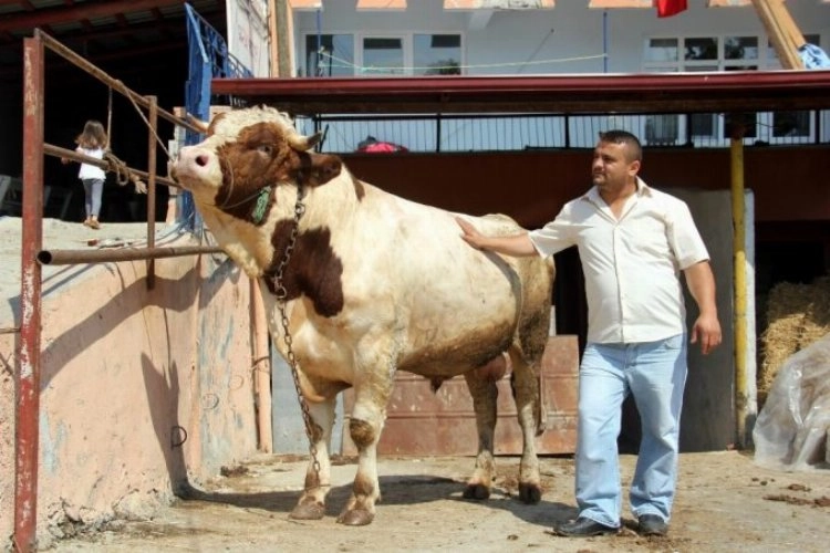 Samsun’da 1 ton 750 kilogram ağırlığındaki simental cinsi boğa, 37 bin TL’den satışa çıkarıldı.Samsun’da uzun yıllardır hayvancılıkla uğraşan 30 yaşındaki Murat Kocaman, otomobil değerindeki kurbanlık boğayı görücüye çıkardı. Atakum ilçesinde hayvancılık yapan Murat Kocaman, 1 ton 750 kilogram ağırlığında olan simental cinsli Neco isimli boğayı kurbanlık olarak satışa çıkardı. 2 seneden fazla süredir Neco’ya bir baba gibi baktığını belirten Kocaman, boğasını 37 bin TL fiyatla satışa çıkardı. Kocaman, Neco’yu alana yanında hediye olarak Nazlıcan adındaki 1 ton 590 kilogram ağırlığındaki aynı cinsten olan düveyi de hediye edeceğini söyledi.Her sene kurban için büyükbaş hayvan yetiştirdiğini dile getiren Murat Kocaman, “Neco isimli boğamı 2 senedir besliyorum. Ben onu 6-7 aylıkken aldım. Şu anda tartıldığında 1 ton 750 gram ağırlığında geliyor. Bir de onun arkadaşı olan Nazlıcan isimli dişi hayvan var. Birlikte büyüdüler. O da 1 ton 590 kilo ağırlığında. Aralarında 100-150 kilogram arasında bir fark var. Ben Neco’ya 37 bin TL fiyat biçtim. Neco’yu alana yanında Nazlıcan’ı da hediye vereceğim. Bugün bu boğaların elimde olduğunu duyan bir arkadaşımız bize pazarlık için geldi. En son 35 bin TL verdiler ancak vermedim. Karadeniz Bölgesi’ndeki en büyük hayvan şu anda Neco. Bunları alacak olana, alana şimdiden hayırlı olsun” dedi.1 ton 750 kilogram ağırlığındaki boğa yeni sahibini bekliyor.