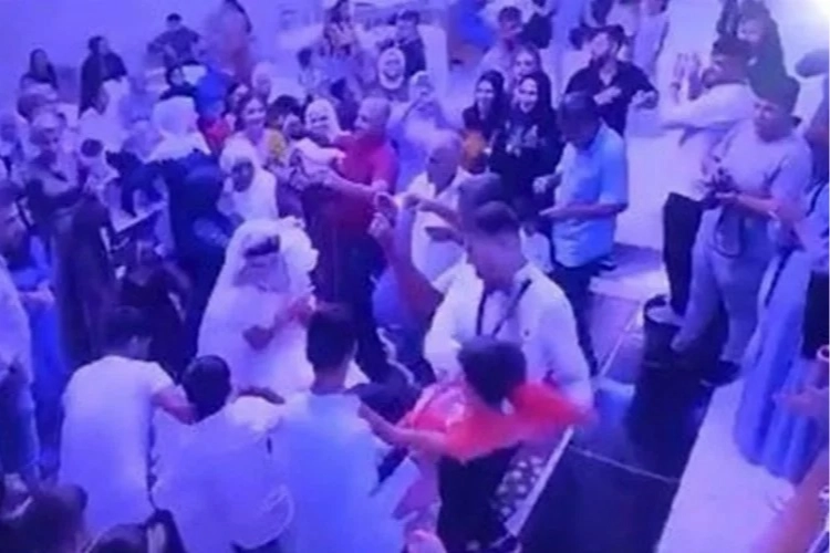 Gelin, damat ve yakınları oyun oynadığı sırada düğüne katılanlardan bazıları üzerlerine para attı. Düğüne katılan birkaç çocuk da paraları toplamaya çalıştı.