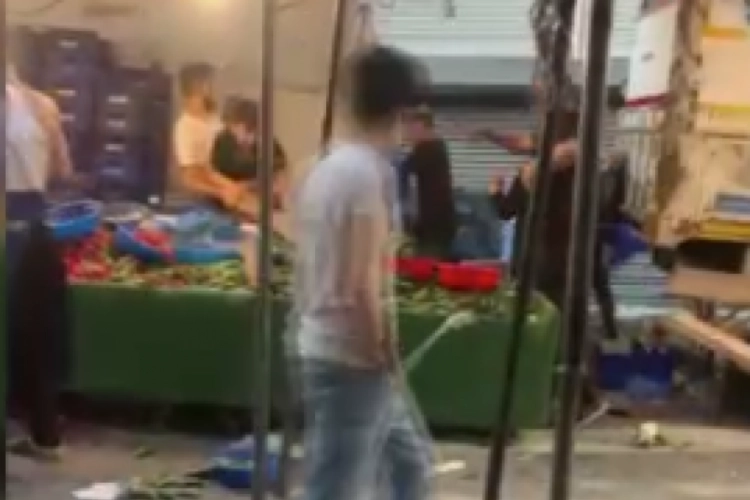 Pazarcı ile müşteri arasında çıkan tartışmasında ortalık karıştı. Kasa ve sopalarla birbirine saldıran tarafların o anları ise kameraya yansıdı