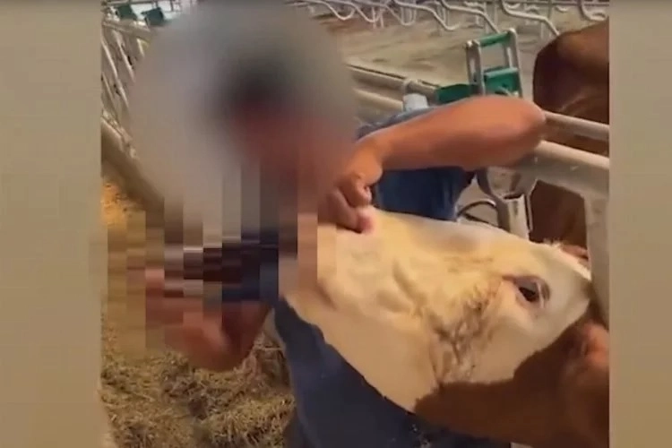 Sosyal medya platformu TikTok'ta ortaya çıkan görüntülerde bir kişinin büyükbaş bir hayvana zorla içki içildiği görüldü.