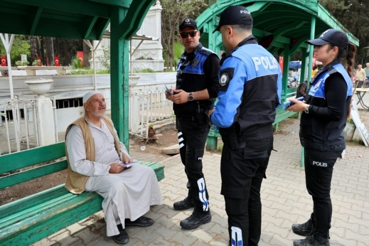 Adana'da cami imamıyla birlikte ekipler, mezarlıkta kafasına takke geçirip eline de Kur'an-ı Kerim alıp mezar başında dua edenleri tek tek durdurup kontrol etti.