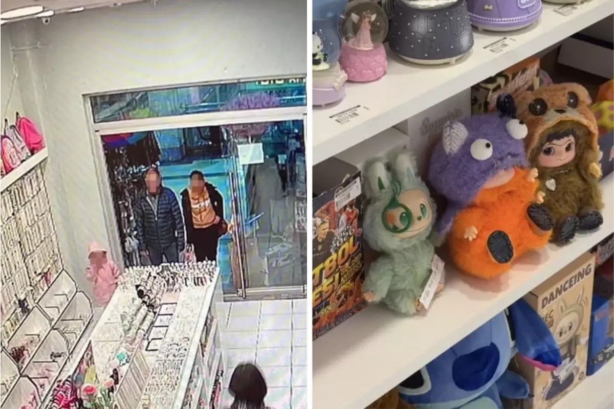 Kasaya yönelip popüler hale gelen 'Labubu' oyuncaklarından birini satın alan grup, o sırada kasiyerin ilgisinden faydalanarak raftaki diğer iki oyuncağı montlarının altına gizleyip dükkandan çıktı.