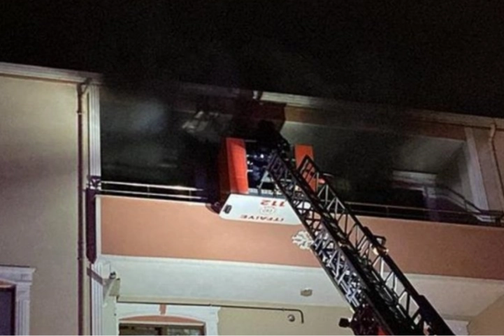 Evi dumanla kaplı gören ev sahibi balkona çıkarak 112 Acil Çağrı Merkezine haber verdi. İhbar üzerine olay yerine itfaiye, sağlık ve polis ekipleri sevk edildi. Kısa sürede olay yerine gelen ekipler, balkonda mahsur kalan U.K'yi itfaiye aracıyla sepete alınarak aşağıya indirdi.