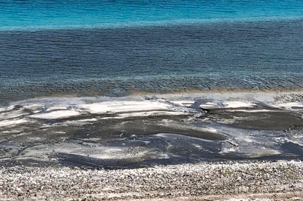 Burdur'un Yeşilova ilçesindeki Salda Gölü'nün beyaz kumsallarında kararmaların arttığı bildirildi.