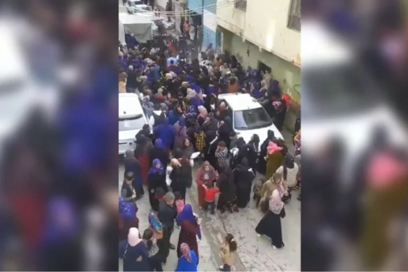 Tişört dağıtıldığını duyanlar mahalleye geldi. Yardım kısa sürede izdihama dönüşürken, bazı vatandaşlar ezilme tehlikesi geçirdi.