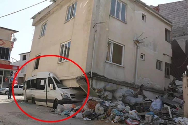 Meydana gelen depremde iki katlı bir binanın yıkılmasını ise altında park halindeki minibüs önledi. Bina park halindeki minibüsün üzerine oturdu. Minibüs adeta kolon görevi görürken, 6 aile depremden sağ kurtuldu.