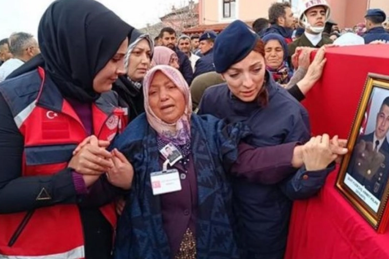 Şehidin annesi Gülbahar Aslan ise oğlunun fotoğrafını eliyle havaya kaldırıp "Bugün bayram bize. Bayramımız kutlu olsun" diye konuştu. Şehidin acılı ailesini, askeri yetkililer teselli etti.