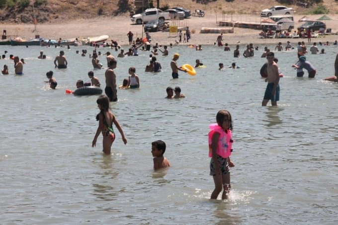Hava sıcaklığının 40 derecenin üzerine çıktığı Elazığ’da vatandaşlar, ’doğunun saklı denizi’ olarak adlandırılan Hazar Gölü’nü doldurdu.Türkiye’de derinliği ile ilk sırada yer alan, 22 kilometre uzunluğa, 6 kilometreyi bulan genişliğe sahip Hazar Gölü’nün kıyıları sıcaktan bunalanların akınına uğradı. Bölge genelinde hava sıcaklığının 40 dereceyi geçmesinin ardından Elazığ dışında Diyarbakır, Malatya, Bingöl, Tunceli, Adıyaman, Şanlıurfa ve Mardin gibi bölgeye yakın kentlerde yaşayan vatandaşlar, denize uzak olmaları nedeniyle serinlemek ve tatil amaçlı Hazar Gölü’nü tercih ediyor.Akdeniz ve Ege sahillerini aratmayan Hazar Gölü’ne gelenler hem serinliyor hem de şezlong, şemsiye, deniz bisikleti, tekne turu gibi imkanlardan faydalanarak tatil yapıyor.Havaların çok ısınmasıyla vatandaşların Hazar Gölü’ne akın ettiğini belirten tatil köyü işletmecisi Fırat Bahçeci, “Bingöl, Malatya, Elazığ, Diyarbakır ve Şanlıurfa’dan misafirlerimizi ağırlıyoruz. Talep çok yüksek. Bu sene sıcaklıklar bayağı arttı. İnsanlar serinlenmek için yoğun bir talep oldu” dedi.Malatya’dan geldiklerini aktaran Muhtesi Yılmaz ise, “Arkadaşlarımız tercih ettiği için geldik. Hava sıcak ve biraz serinleyelim dedik. Tatil amaçlı güzel yer ve beğendik. Diğer sefere başka arkadaşlarımızı da getiririz” diye konuştu.Her sene 8 sefer Hazar Gölü’ne geldiğini dile getiren Fethi Ahmet Şimşek, “Geçen sene geldiğimde buralarda Suriyeliler vardı. Bu sene azalmış. Kendi halkımız biraz rahat ediyor. 41 derece sıcaklık var,bunaltıyor. Serin bir su bulduğumuz zaman içine koşuyoruz. Herkesi buraya davet ediyoruz. Elazığ’dan oğlum ve arkadaşımızla beraber geldik” şeklinde konuştu.Diyarbakır’dan geldiklerini ve hava sıcaklığından dolayı 6 gündür Hazar Gölü’nde olduklarını ifade eden Fırat Polat ise, “Çocuklar gelmek istedi ondan dolayı geldik. Buralar çok güzel ve herkese tavsiye ederiz” dedi.