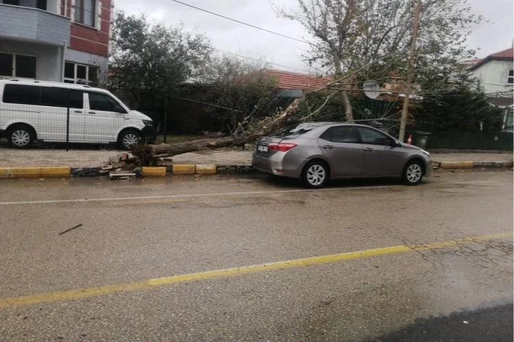 Keşan'da zaman zaman şiddetini artıran rüzgar nedeniyle, Aşağı Zaferiye Mahallesi Enez Caddesi'nde, kaldırımdaki ağaç kökünden kırılarak, park halinde bulunan bir otomobilin üzerine devrildi.