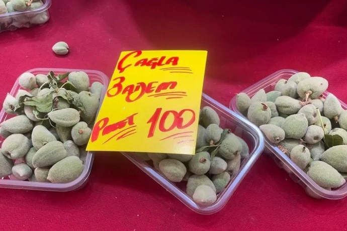 Bir kısmı ihracata giden çağla, iç piyasada sunuldu ancak kilosu bin liraya varan fiyatlardan olunca gramla satıldı. Bursa'nın Nilüfer ilçesindeki pazar yerlerinde mart ayının ilk haftasında bin liradan satılan çağlanın kilosu, Ramazan ayının sonuna yaklaşılırken ucuzladı. Pazar tezgahlarında son aylarda fiyatı yüzde 60'a varan oranlarda gerileyen çağla, kalitesine göre kilosu 400 ila 600 liradan alıcı buluyor. Badem çağlasını pazarcı esnafına göre henüz kiloyla satın alan yok. Esnaf da bu yüzden 250'şer gramlık paketlerini 100 ila 150 lira arasında değişen fiyatlardan satıyor. Bahar meyvelerinden çilek de pazarın diğer pahalı ürünü olarak dikkati çekiyor. Çilek, kilosu 150 ila 200 lira arasında değişen fiyatlardan alıcı buluyor. Pazarcı esnafı, tarımsal üretim arttıkça çiftçiden tezgaha ürün fazla geldikçe fiyatların gerileyeceğini belirterek, bu iki meyveyi sevenlerin birkaç hafta daha sabretmesini istedi. Bağışıklığı güçlendiren, kötü kolesterolü (LDL) düşüren badem çağlası, kalorisi çok düşük olduğu için ara öğün olarak tüketildiğinde kilo vermeye yardımcı oluyor, C vitamini eksikliklerini gideriyor. Tekli yağ asitleri içermesi bakımından kalp ve damar hastalıklarına karşı koruyucu etkisi bulunan çağla, içindeki potasyum sayesinde tansiyonu dengeliyor.