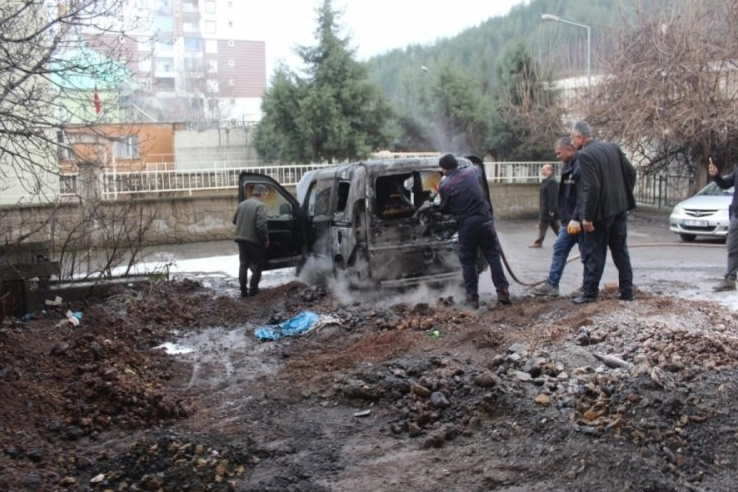 Ekiplerin müdahalesi ile alevler söndürülürken, araç kullanılamaz hale geldi. İlk incelemede, yangının aracın yanına dökülen kalorifer atığı parçaları nedeniyle çıktığı belirlendi.