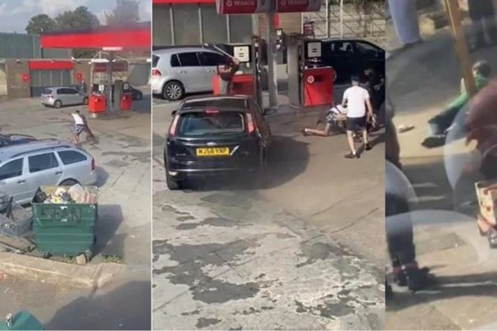 Akaryakıt istasyonundaki birkaç metrelik kovalamacanın ardından köpek bir kez daha kurbanına yetişiyor ve genç erkek yere kapaklanıyor.