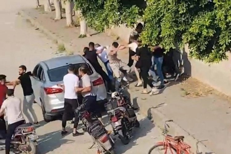 Kavgada 17 kişinin olduğu grupta herkes birbirine saldırdı, o anlar vatandaş tarafından cep telefonu kamerasıyla kaydedildi.