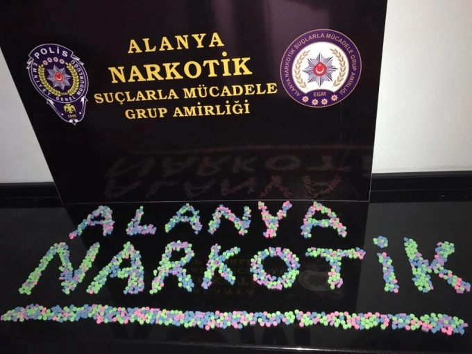 Antalya’nın Alanya ilçesinde polisin şüphe üzerine durdurduğu otomobilde bin 475 adet ecstasy uyuşturucu hap ele geçirilirken, olayla ilgili 2 kişi gözaltına alındı.Alanya İlçe Emniyet Müdürlüğü Narkotik Suçlarla Mücadele Grup Amirliği ekipleri, sabah saatlerinde sürücüsünün şüpheli tavırlar sergilemesi üzerine Erzurum plakalı otomobilli durdurdu. Bunun üzerine arama yapan polis, bin 475 adet uyuşturucu-uyarıcı sentetik ecstasy hap maddesi ele geçirirken, araçta bulunan Z.Ö. ve H.Ç. isimli şahısları gözaltına aldı. Gözaltına alınan şüphelilerin emniyetteki işlemlerinin sürdüğü öğrenildi.