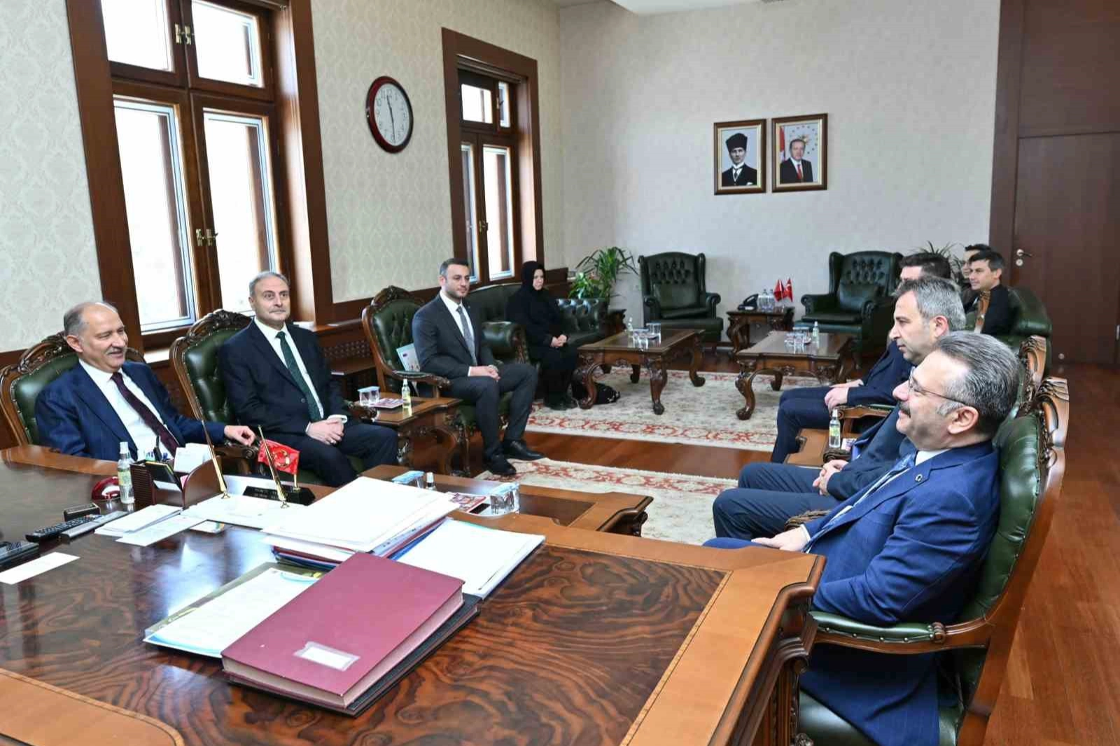Çeşitli programlara katılmak üzere Eskişehir’e gelen Tarım ve Orman Bakan Yardımcısı Abdulkadir Polat, Eskişehir Valisi Hüseyin Aksoy’u makamında ziyaret etti. Valiliğe gelişinde Vali Aksoy tarafından karşılanan Polat, ziyaret anısına Valilik Şeref Defteri’ni imzaladı. Ziyarette, Eskişehir’de tarım ve orman alanında yürütülen projeler, planlanan yatırımlar ve bölgesel kalkınma konuları ele alındı. Vali Hüseyin Aksoy, Bakan Yardımcısı Polat’a Eskişehir’in tarım ve orman potansiyeli hakkında bilgi vererek, bu alanda gerçekleştirilen çalışmaların ve gelecekteki projelerin önemini vurguladı. Aksoy, ziyaretinden dolayı Polat’a teşekkürlerini iletti. Bakan Yardımcısı Abdulkadir Polat ise Eskişehir’de olmaktan duyduğu memnuniyeti ifade ederek, "Tarım ve orman alanındaki yatırımların ve projelerin hızla hayata geçirilmesi için çalışıyoruz," dedi. Polat, misafirperverliği için Vali Aksoy’a teşekkür ettikten sonra diğer programlarına katılmak üzere Valilikten ayrıldı.