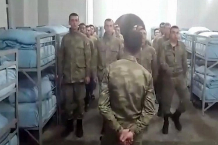 Görüntülerde hizalı yürüyüş ve sayma çalışması yaptıran rütbeli asker, daha sonra erlere emir vererek Bucak'a selam gönderiyor: "Selam olsun Fatih Bucak."