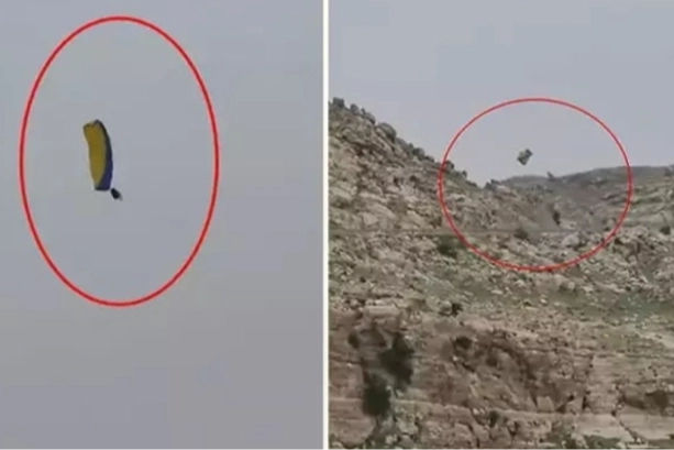 Şırnak'ın Güçlükonak ilçesinde düzenlenen bir festivalde gösteri yapan yamaç paraşütçüsü R.U.A., ters rüzgara kapılarak, kayalıklara düşüp yaralandı. O anlar, cep telefonu kamerasına yansıdı.
