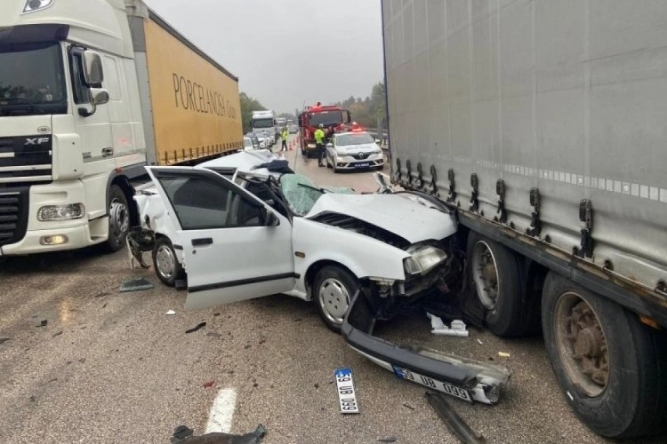 Kaza, K-100 karayolu Bolu Gerede ilçesinde meydana geldi. Karabük istikametinde seyreden J.L. yönetimindeki yabancı plakalı tır, M.K. idaresindeki hafifi ticari araçla çarpıştı. Bu sırada aynı istikamette ilerleyen H.T'nin kullandığı otomobil de kaza nedeniyle yol kenarında duran tıra arkadan çarptı. Meydana gelen kazada otomobil sürücü H.T. otomobil içerisinde sıkıştı. İhbar üzerine kaza yerine polis, sağlık ve itfaiye ekipleri sevk edildi. Otomobilde sıkışan sürücü, Gerede Belediyesi İtfaiye Müdürlüğü ekiplerinin müdahalesiyle kurtarıldı. Kazada ağır yaralanan otomobil sürücüsü, ambulansla Gerede Devlet Hastanesine kaldırıldı. Kazayla ilgili inceleme başlatıldı.