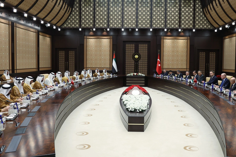 Cumhurbaşkanı Erdoğan, imza töreninde yaptığı konuşmada, Yüksek Düzeyli Stratejik Konsey’in ilk toplantısı vesilesiyle BAE Devlet Başkanı Al Nahyan ve heyetini Ankara’da misafir etmekten memnuniyet duyduğunu belirterek ziyaretin ve bugünkü istişarelerin hayırlara vesile olmasını temennisinde bulundu. Cumhurbaşkanı Erdoğan, "2023 yılında Abu Dabi’ye yaptığım ziyarette değerli kardeşim Şeyh Muhammed bin Zayed ile temelini attığımız stratejik ortaklığımız hamdolsun hemen her alanda meyvelerini vermeye başladı. Ticaretten altyapıya, savunma sanayinden enerjiye, teknolojiden ulaştırmaya kadar her alanda ciddi mesafe kat ettik" ifadelerini kullandı.