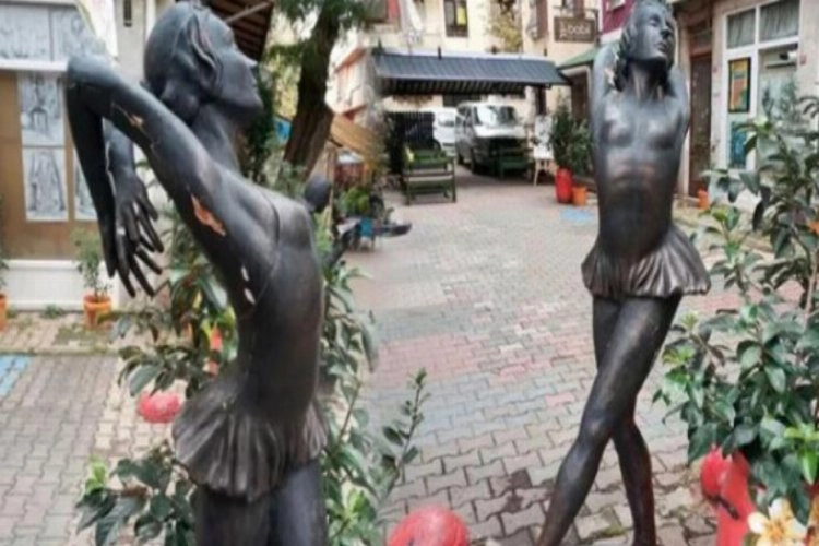 "Türkiye'de ilkler" temalı sergideki Zeliha Kılıçoğlu ve Mirza Erdem tarafından yapılan Türkiye'nin ilk balerini Meriç Sümen heykeline gece geç saatlerinde saldırıda bulunuldu.
