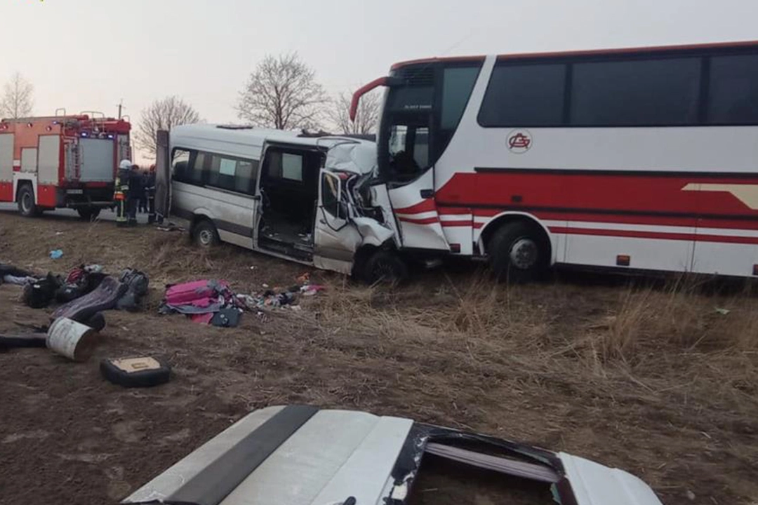 Hmelnitskiy bölgesindeki Kropivnitskiy-Znamenka karayolunda seyir halinde olan bir otobüs ve bir minibüs kafa kafaya çarpıştı.