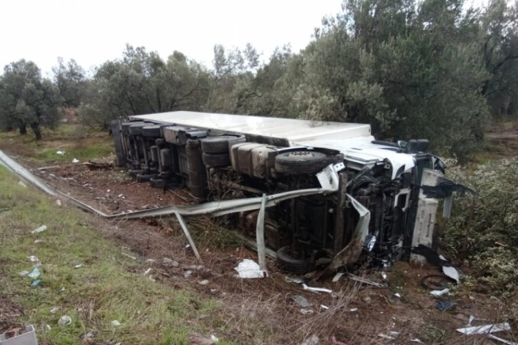 Edinilen bilgiye göre, henüz ismi öğrenilemeyen bir sürücünün hâkimiyetindeki IF-31 FWD yabancı plakalı tır, Çanakkale istikametinden İzmir yönüne giderken kuvvetli yağış nedeniyle yol ortasındaki refüjü aşarak karşı şeritteki bariyerlere çarpıp, yol kenarındaki hendeğe yuvarlandı.