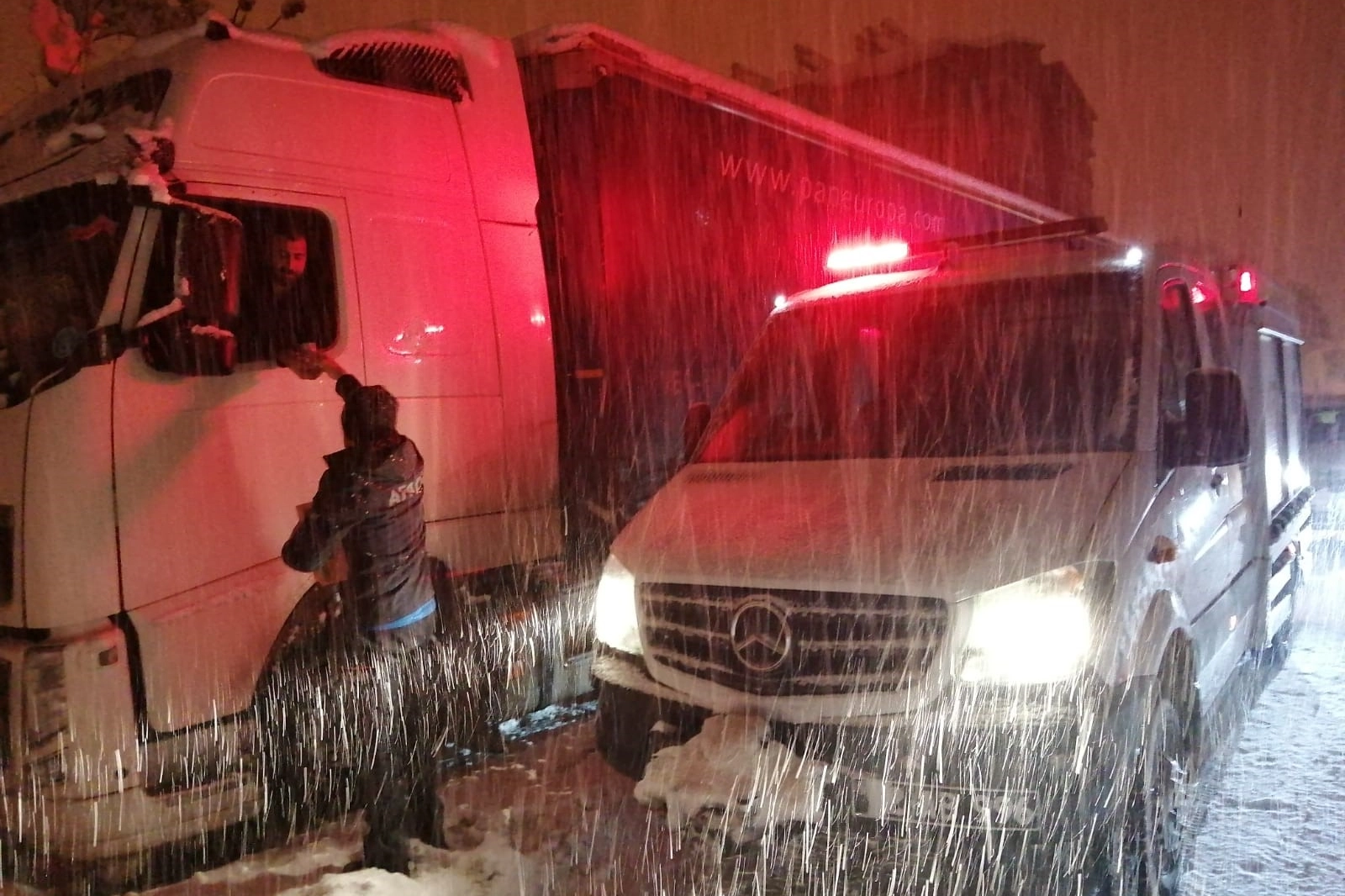 Bingöl’ün Genç ilçesi ile Diyarbakır karayolunda kar nedeniyle mahsur kalan araç sürücülerine kumanya dağıtımı yapıldı. Meteoroloji 13. Bölge Müdürlüğünün uyarısının ardından, bölge genelinde olduğu gibi Bingöl’de de kar yağışı etkisini sürdürüyor. Kar yağışı hayatı olumsuz etkilerken, birçok yol da araç veya tır trafiğine geçici olarak kapatıldı. Yolu geçici olarak tır geçişlerine kapatılan Genç-Diyarbakır karayolunda araçlar mahsur kaldı. Sürücülerin mağduriyet yaşamaması için Bingöl İl Afet ve Acil Durum Müdürlüğü (AFAD) ile Bingöl Türk Kızılay’ı Şubesi tarafından vatandaşlara kumanya dağıtımı yapıldı.