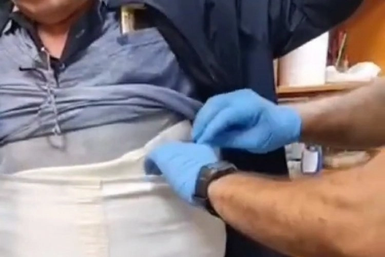 Gümrük memurlarının üst araması yapması sırasında, bel bölgesindeki iki elastik kemerin altında, yeşil çimen renginde kütleli üç şeffaf vakum torbasının gizlendiği tespit edildi.