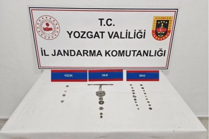 Yozgat İl Jandarma Komutanlığı ekipleri Akdağmadeni ilçesinde bir şüphelinin elindeki tarihi eserleri satmak için Yozgat'a geleceği bilgisine ulaştı. Akdağmadeni Cumhuriyet Başsavcılığı koordinesinde yürütülen operasyonda şüpheli H.İ.E.'nin aracını durduran jandarma ekipleri, 18 adet Bizans dönemine ait sikke, 6 obje, 4 yüzük ve 1 mühür olmak üzere toplam 29 adet tarihi eser ele geçirildi. Ele geçirilen tarihi eser niteliğindeki sikke ve objeler, Yozgat Müze Müdürlüğüne teslim edilirken şüpheli H.İ.E. hakkında adli işlem başlatıldı.