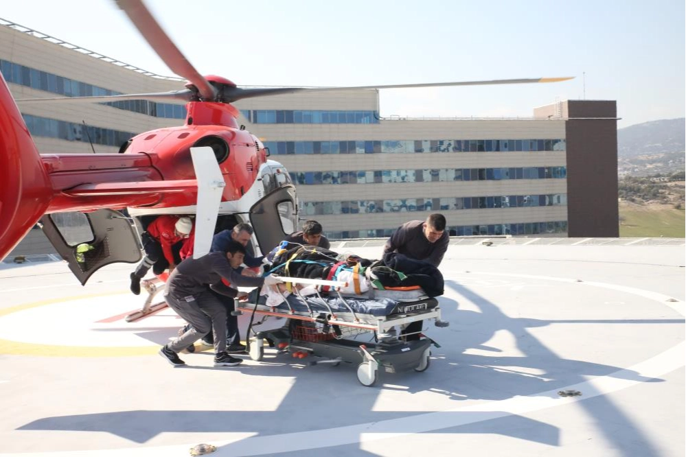 Depremde yaralanan bazı vatandaşlar, ambulans helikopterlerle Mersin gibi büyük şehirlerdeki hastanelere sevk ediliyor.