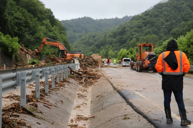 Zonguldak-İstanbul kara yolu sağanağın ardından meydana gelen heyelan nedeniyle ulaşıma kapatıldı.