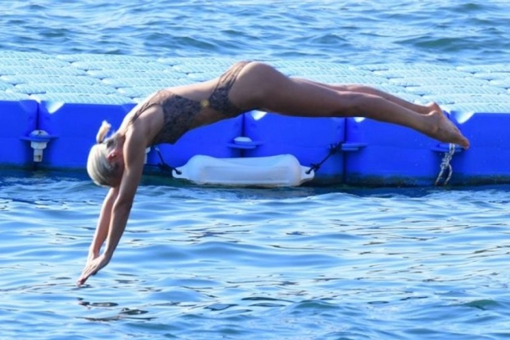 Gün boyu güneşin tadını çıkaran ikili, daha sonra kendilerini Ege'nin serin sularına attı.