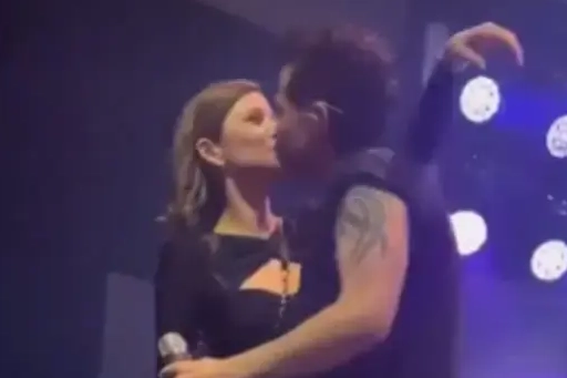 Çiftin dudaktan öpüşerek birbirine sarıldığı o anlar geceye damga vurdu.