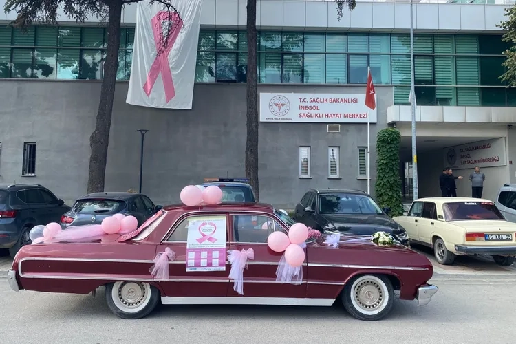 Bursa İnegöl'de Sağlık Müdürlüğü, Ekim Meme Kanseri Farkındalık Ayı'nda klasik bir otomobili pembe kurdeleyle süsleyerek etkinlik düzenledi. Etkinlikte, erken teşhisin önemine vurgu yapıldı ve vatandaşlara bilgilendirme yapıldı.