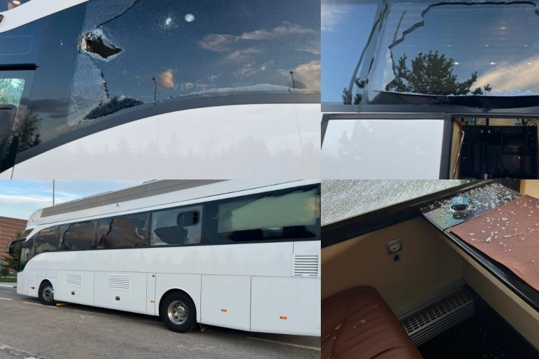 İmamoğlu harekete geçen otobüste polisi olaya müdahale etmeye çağırdı ve ortalık sakinleşene kadar kent gezisine devam edeceğini söyledi.