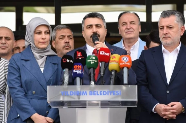 Yıldırımlıların kenti yeniden yönetmek için 5 yıllık bir ruhsat verdiğini kaydeden Başkan Oktay Yılmaz, “2019 yılında göreve gelirken ‘Sensiz olmaz Yıldırım’ diyerek hep birlikte yürüyeceğimizi ifade etmiştik. Göreve gelince de ‘Yıldırım sizinle Güzel’ diyerek aynı ruhla 5 yıl boyunca bu aziz kente hizmet etmeye gayret ettik. Âşık olduğum bu kente hizmet ederken Yıldırım Bayezid Han’ın cesaretini, devleti yeniden derleyip toplayan Çelebi Mehmet Han’ın ferasetini ve gönüllere taht kuran Emir Sultan’ın şahsiyetini kendimize rehber edindik. Samimiyet ve gayretle çalışıp birçok proje ve hizmet kazandırdık. Bunu yaparken de ‘Birlik ve Beraberlik İşin Besmelesidir’ dedik. Yıldırım’ın değerlerin şehri olduğunu vurgulayarak 5 yıl sonunda ‘Ne Varsa Yıldırım’da Var. Yıldırım’da Bereket Var’ diyecek bir noktaya geldik. Bugün kazandığımız bu güzel sonuç da birlik ve beraberliğimizin bir bereketi. Sizlerin verdiği destek ve güven, bu sonucun temel taşıydı. Her birinize minnettarım. Bu süreçte yanımda olan aileme, AK Parti Yıldırım İlçe Başkanıma, MHP Yıldırım İlçe Başkanıma, teşkilatlarımıza, çalışma arkadaşlarımıza, mahalle başkanlarımıza, sandık kurulu üyelerimize, müşahitlerimize, dualarında hiçbir zaman bizleri eksik etmeyen büyüklerimize, hanımefendilere, gençlere, her gördüğünde bizi tebessümle karşılayan çocuklarımıza şükranlarımı arz ediyorum. Dün yapılan seçimlerde omuzlarımıza büyük bir sorumluluğun yüklendiğini görüyorum. Yeni dönemde de samimiyet ve gayretle, vaat ettiğimiz her bir projeyi, aynı birlik ve beraberlikle, ilham aldığımız değerlerimiz ile daha ileriye taşımaya devam edeceğiz” dedi.
