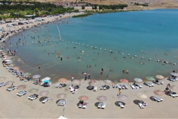 Elazığ’da serinlemek isteyen vatandaşlar ise derinliği ile ilk sıralarda yer alan, 22 kilometre uzunluğa ve 6 kilometre genişliğe sahip Hazar Gölü’nün kıyısında bulunan plajlara akın etti.