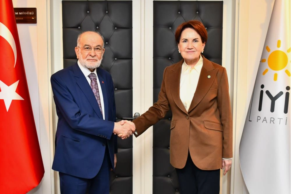 Saadet Partisi Genel Başkanı Temel Karamollaoğlu, 2 Mart Perşembe günü Saadet Partisi ev sahipliğinde düzenlenecek olan Altılı Masa toplantısı öncesinde ziyaretlerine devam ediyor. Karamollaoğlu bu çerçevede İYİ Parti Genel Başkanı Meral Akşener'i, İYİ Parti Genel Merkezi'nin ek binasındaki makamında ziyaret etti.