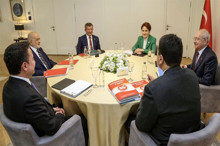 CHP Genel Başkanı Kemal Kılıçdaroğlu, Gelecek Partisi Genel Başkanı Ahmet Davutoğlu, DEVA Partisi Genel Başkanı Ali Babacan, Demokrat Parti Genel Başkanı Gültekin Uysal, İYİ Parti Genel Başkanı Meral Akşener ve Saadet Partisi Genel Başkanı Temel Karamollaoğlu ile 'Liderler Buluşması'nda bir araya geldi.