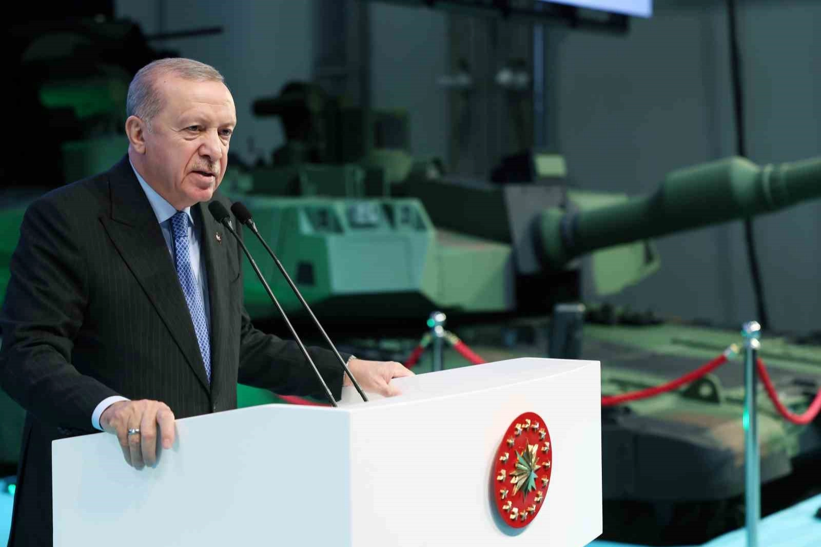 Savunma sanayinde devletin desteği, özel sektörün dinamizmiyle birleşince son yıllarda büyük bir ivme yakalandığına dikkat çeken Cumhurbaşkanı Erdoğan, "Şöyle sözleri bir 20 yıl, 25 yıl geriye götürmek istiyorum. Ülkemizde bir toplu iğne üretebiliyor muyduk? Toplu iğne, silahtan bahsetmiyorum, hayır. Ama şu anda hamdolsun silahlarını üreten bir Türkiye var. Savunma sanayinde yüzde 20’yi bile üretemiyorduk ama şimdi yüzde 80’i yakaladık. İnsansız hava araçları, nerede, böyle bir imkânımız var mıydı? Yok. Ama şimdi insansız hava araçlarını üreten, silahlı insansız hava araçlarını üreten, Akıncı’sını üreten bir Türkiye var. Son teknolojiye sahip hava, kara, deniz araçlarımızla destan yazmaya devam ediyoruz. Artık yalnızca takip eden değil, takip edilen bir devletiz. Modern silah sistemlerinden kompleks koruma paketlerine, sürüş destek modüllerinden elektronik harp altyapısına kadar her hamlesi, her ürünü merakla beklenen bir ülkeyiz" dedi.