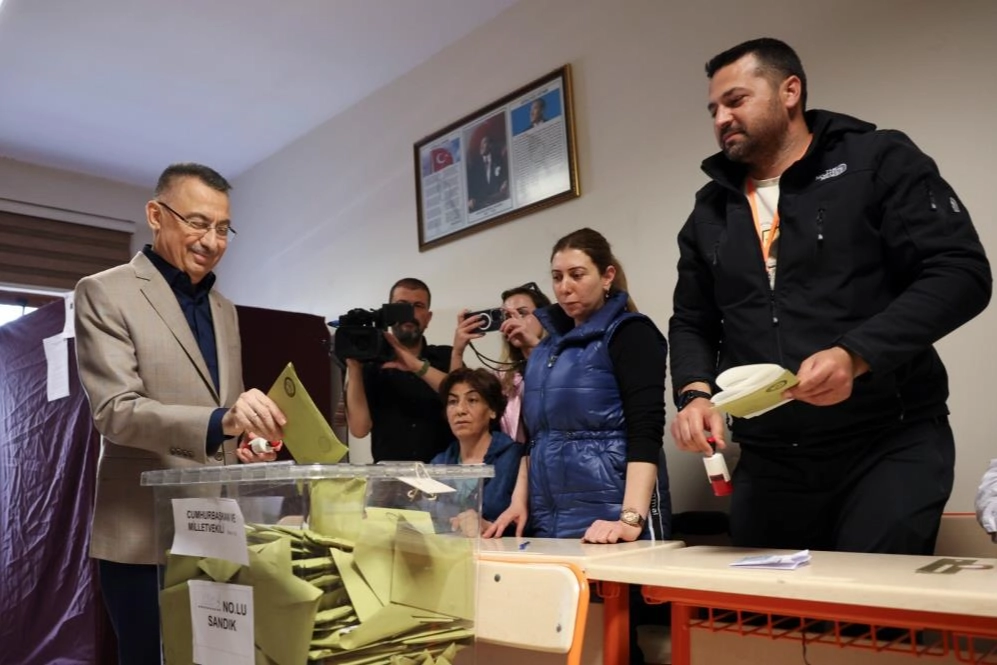 Cumhurbaşkanı Yardımcısı Fuat Oktay, seçim bölgesi olan Ankara Yenimahalle’deki Tevfik İleri Anadolu İmam Hatip Lisesi'ne gelerek, oyunu 1203 nolu sandıkta kullandı. Oktay, oy kullanmaya eşi Hümeyra Şahin Oktay ile birlikte geldi. Oy sırasında bekleyen ve vatandaşlarla sohbet eden Oktay, seçimlerin bayram havası ve demokrasi şöleni içerisinde gerçekleştiğini belirterek, milletin kararının bekleneceğini ifade etti. Oktay, "Bugün bayram havası, demokrasi şöleni içerisinde tüm Türkiye’de hem cumhurbaşkanlığı hem milletvekili seçimleri için sandık başındayız. Çok yoğun bir katılım var. Ankara'da şenlik havasını, bayram havasını, demokrasi şölenini görüyor, yaşıyoruz. İnşallah Türkiye için hayırlı olacak. Çok daha güçlü, çok daha geleceği, aydınlığı parlak Türkiye Yüzyılı’na hep birlikte yürüyeceğiz. Artık bugün doğru adam için söz de, karar da milletimizindir. Milletimiz kararını verecektir, hepimiz de bu karara saygılı olacağız. Türkiye için son derece güzel günleri birlikte yaşayacağız. Ben buradan özellikle şunu ifade etmek istiyorum. Tüm dünya bu seçimleri yakinen takip ediyor. Aynı zamanda Türkiye’deki demokrasi olgunluğunun bir göstergesini de yaşıyoruz. Ben ısrarla iddialı bir biçimde de ortaya koymak istiyorum. Türkiye kadar dünyada seçimlerini şeffaf yapan, yapabilen, olgunluk içerisinde, bir bayram havası içerisinde seçimlerini geçiren ve bu kadar yüksek katılımla seçimlere katılan ve kararını veren başka bir ülke, başka bir milletin olduğunu göremiyoruz baktığımızda. Türkiye bu anlamda da dünyaya örnek teşkil etmektedir. Türkiye için milletimiz için hayırlı olsun, söz de, karar da milletimizindir” dedi.