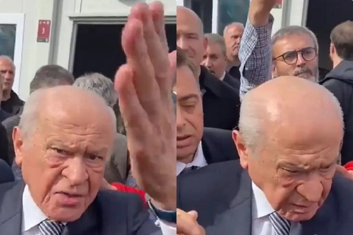 Yoğun kalabalığın olduğu ve vatandaşların konteyner üzerinden "Elbistan il olsun" pankartları tuttuğu alanda Bahçeli kalabalığın arasına girerek sessizlik talep etti ve tepki gösterdi.